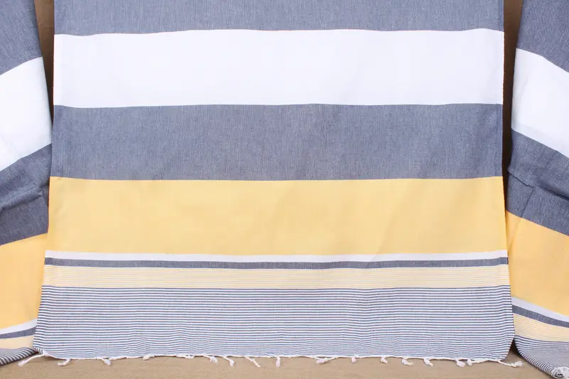 Personalisiertes türkisches Strandtuch, marineblau-gelb gestreift, 40 x 67 Zoll