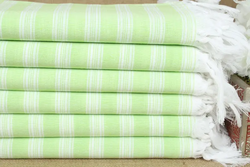 Strandtuch mit Monogramm, türkischer Baumwolle, hellgrün gestreift, 40 x 71 Zoll
