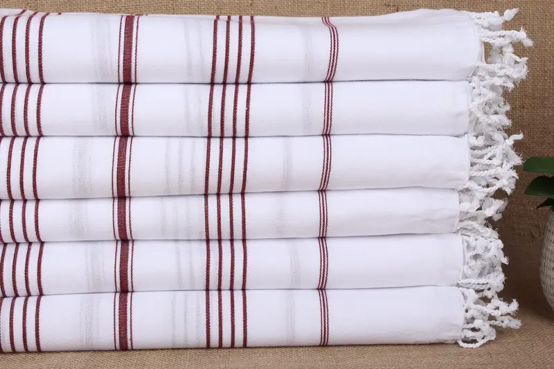 Monogrammiertes Strandtuch aus türkischer Baumwolle, burgunderfarbene Streifen, 40 x 71 Zoll