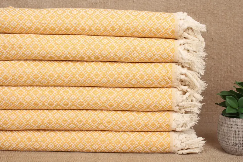 Türkisches Badetuch aus Bio-Baumwolle, Senfgelb, 40 x 71 Zoll