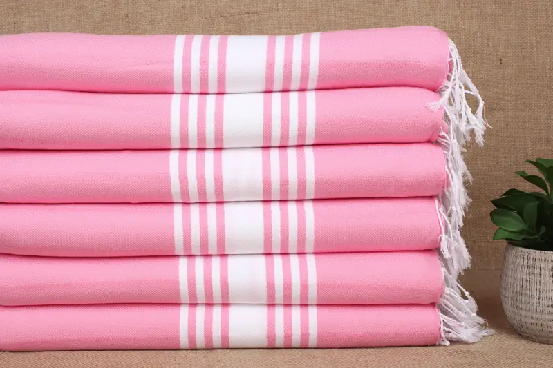 Türkisches Handtuch für den Strand, hellpuderrosa gestreift, 40 x 71 Zoll