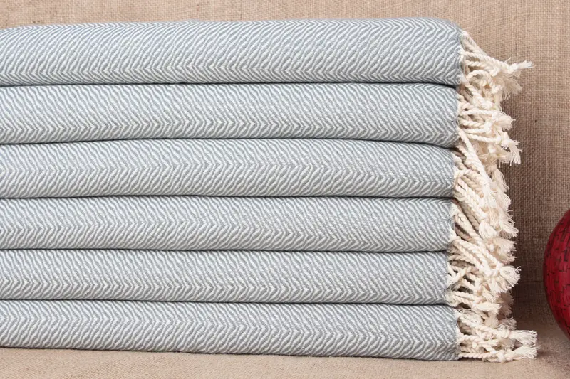 Handgefertigtes Gesichtshandtuch aus Bio-Baumwolle, beige Chevron, 20 x 40 Zoll