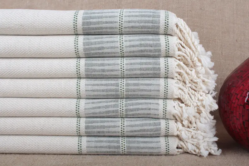 Handgefertigtes Strandtuch aus Bio-Baumwolle, gestreift, Beige, 40 x 71 Zoll