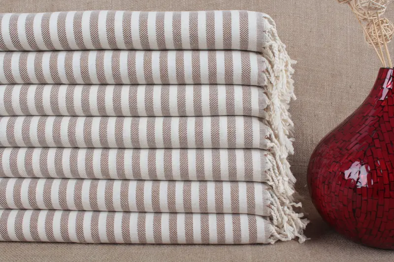 Türkisches Handtuch aus Bio-Baumwolle, gestreift Beige, 24 x 40 Zoll