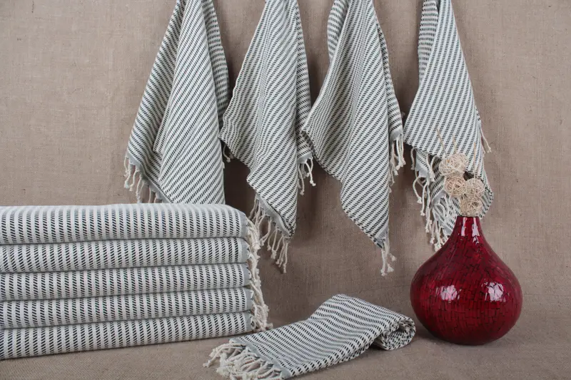 Türkisches Handtuch aus Bio-Baumwolle, gepunktet, Beige, 45,7 x 91,4 cm