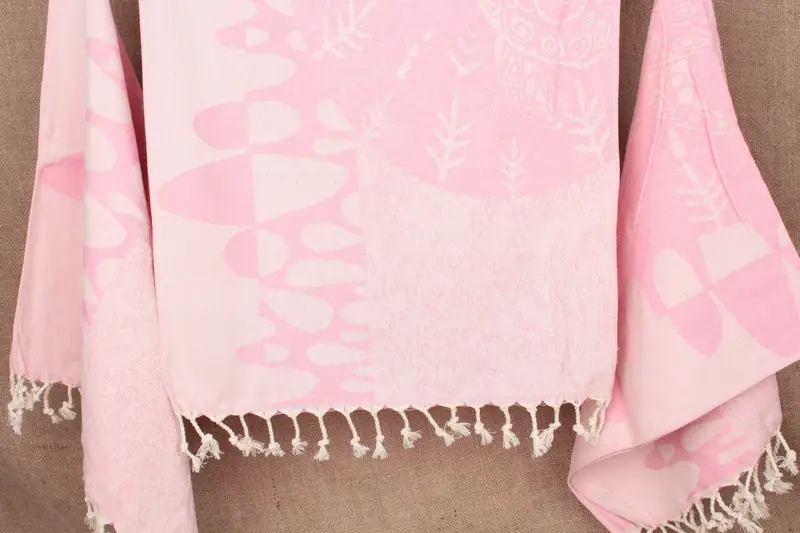 Rosafarbenes Peshkir-Handtuch mit Tiermotiv, 45,7 x 91,4 cm