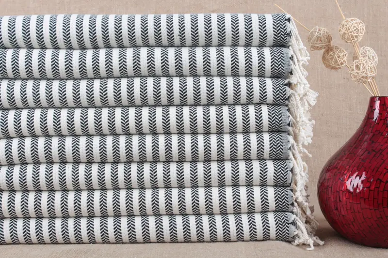 Türkisches Handtuch, Bio-Baumwolle, Beige, Chevron, 45,7 x 91,4 cm
