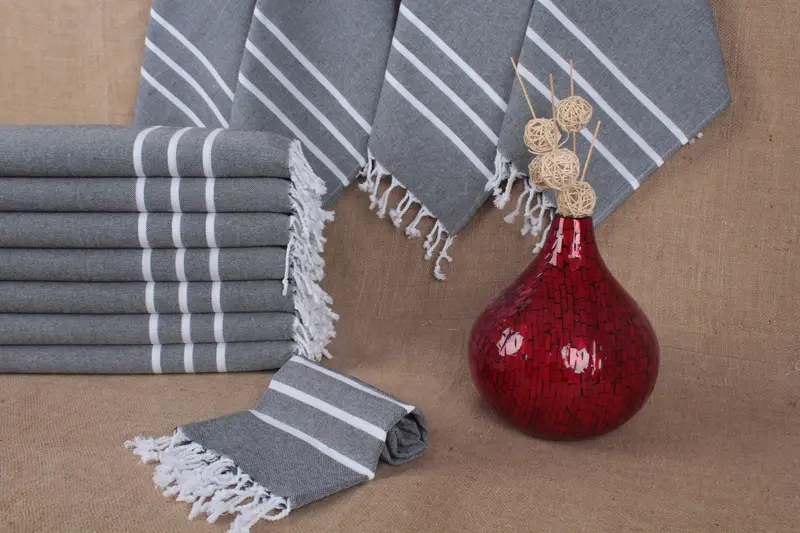 Kleines Handtuch aus Bio-Baumwolle, gestreift, Beige, 18 x 40 Zoll