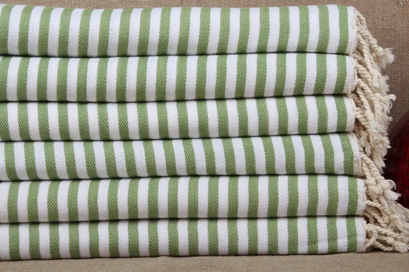Dunkelgrün gestreiftes Küchentuch, bestickt, 18 x 40 Zoll