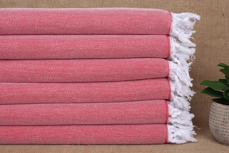 Badezimmerhandtuch, rotes Fischgrätenmuster, 18 x 34 Zoll, türkische Baumwolle