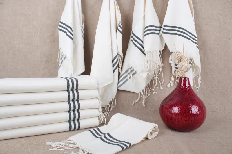 Türkisches Handtuch, gestreift, Peshkir, Beige, Bio-Baumwolle, 24 x 36 Zoll