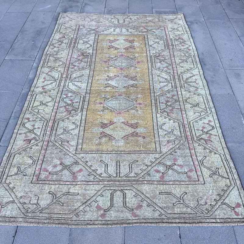 Green & Brown Rug, 5,1x8 ft Plant & Tree Pattern