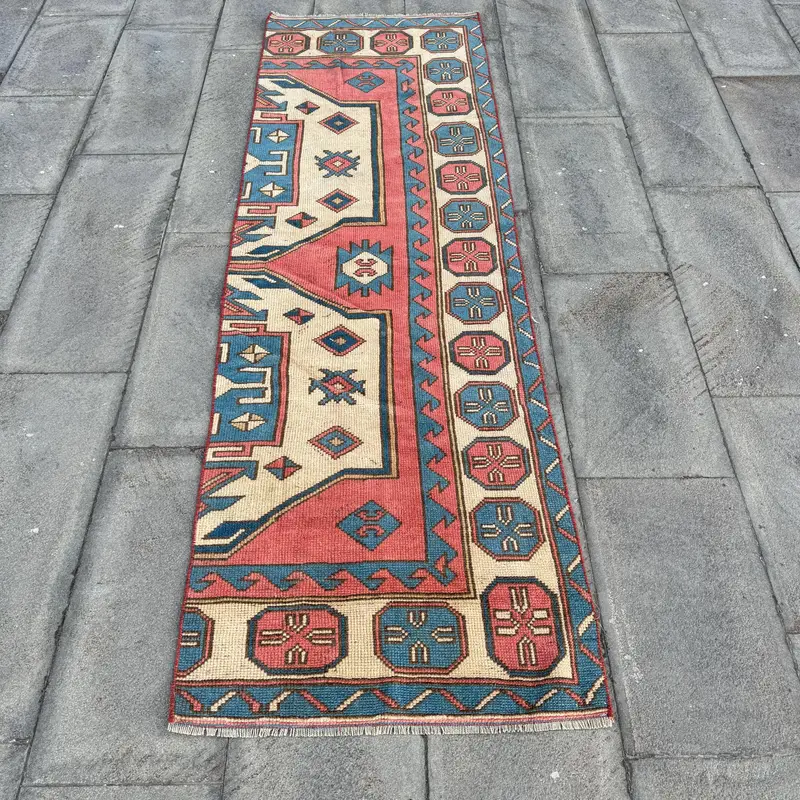 Red & Beige Check Rug, 2,3x7,2 ft Chic Decor