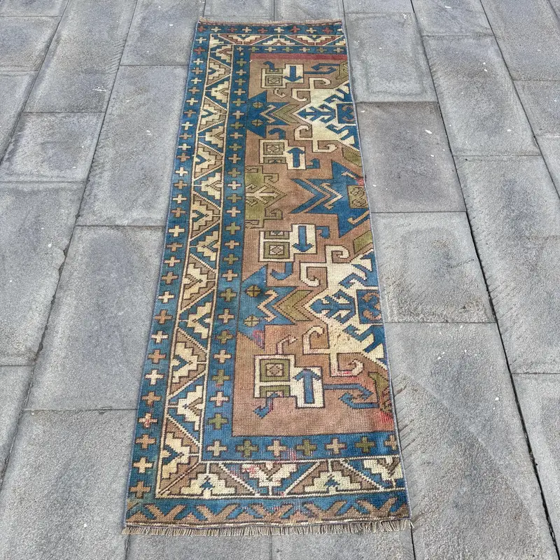 Brown & Blue Ombré Rug, 2x6 ft Chic Decor