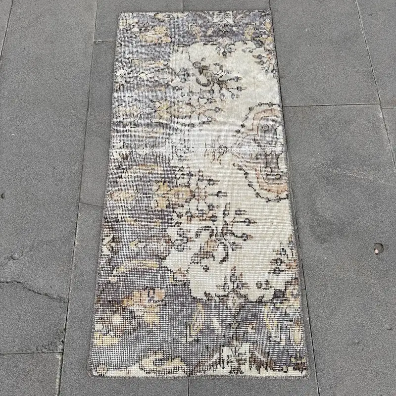 Elegant Beige Rug with Purple Border, 1.7x3.8 ft