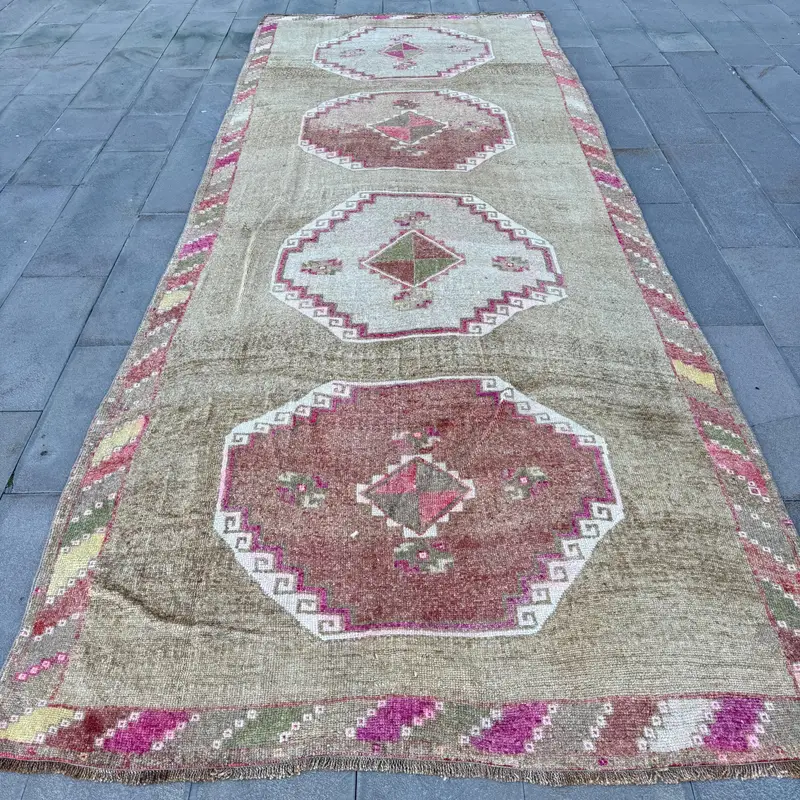 Elegant Beige & Pink Floral Rug, 5.8x14.5 ft Chic Decor