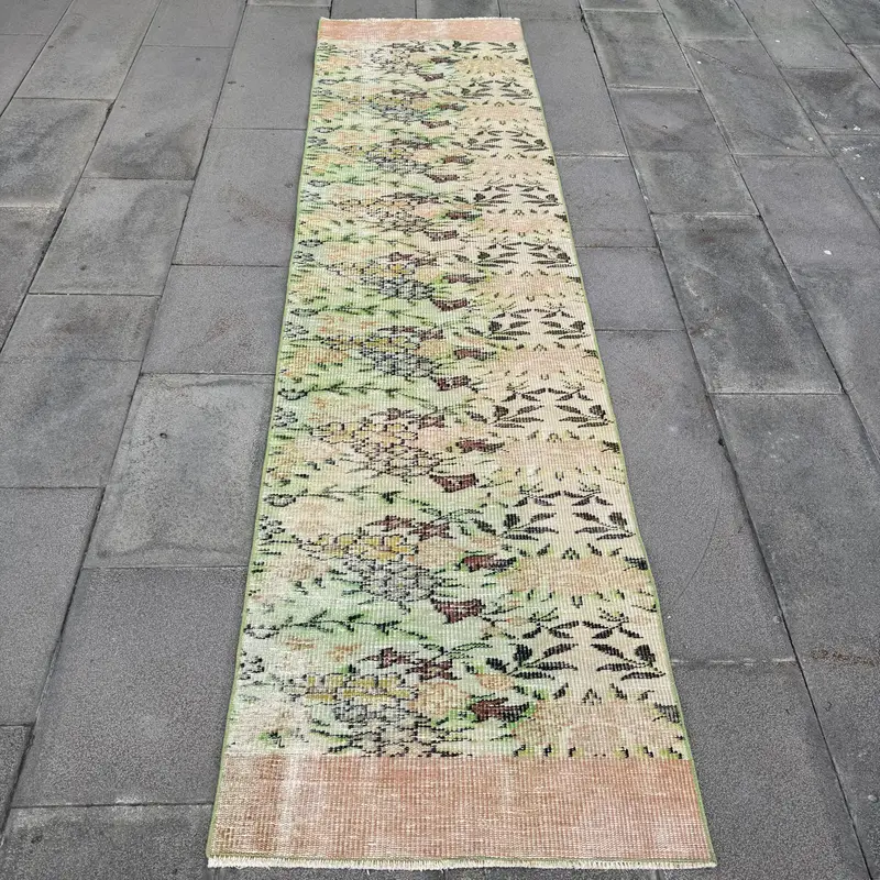 Green & Orange Rug, 2.3x8.8 ft Bordered Design