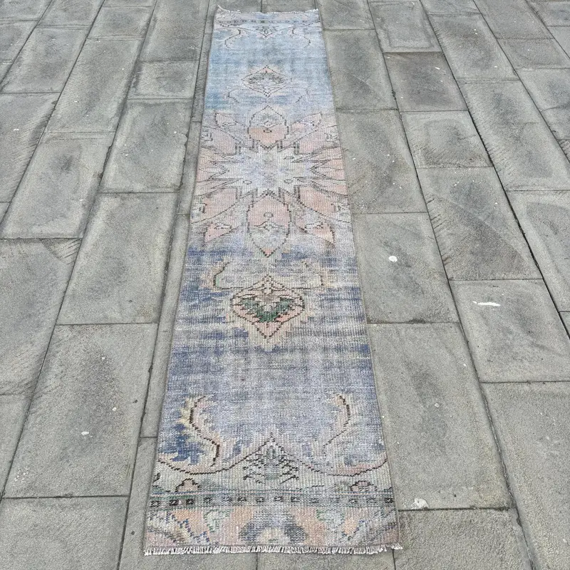 Purple, Orange Striped Rug, 1,9x9 ft Geometric Design