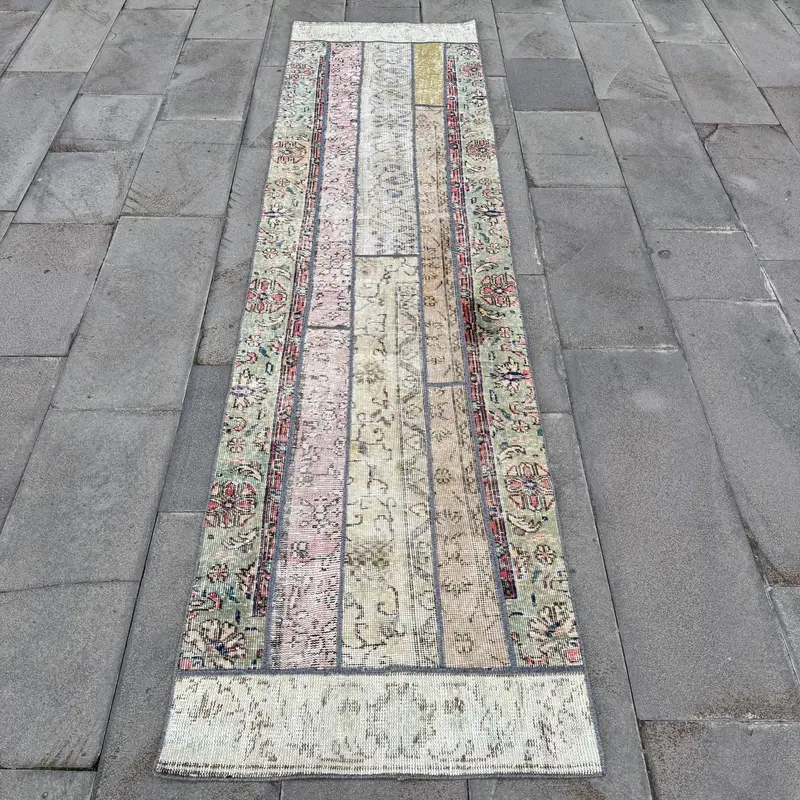 2,4x9,1 ft Beige & Green Animal Print Rug, Unique Design
