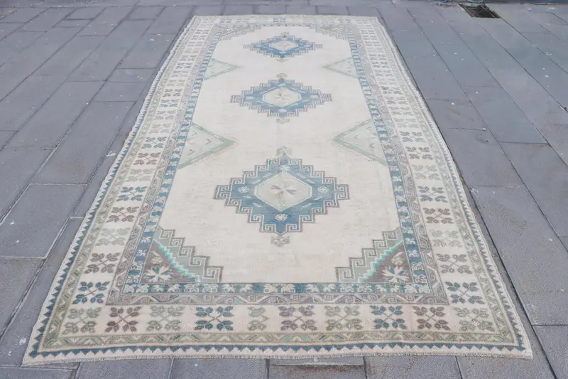 Beige Camouflage Rug, 5.7x11.6 ft with Green Accents