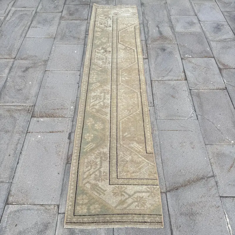 Green Ikat Rug, 1,7x7,8 ft Elegant Living Space Accent