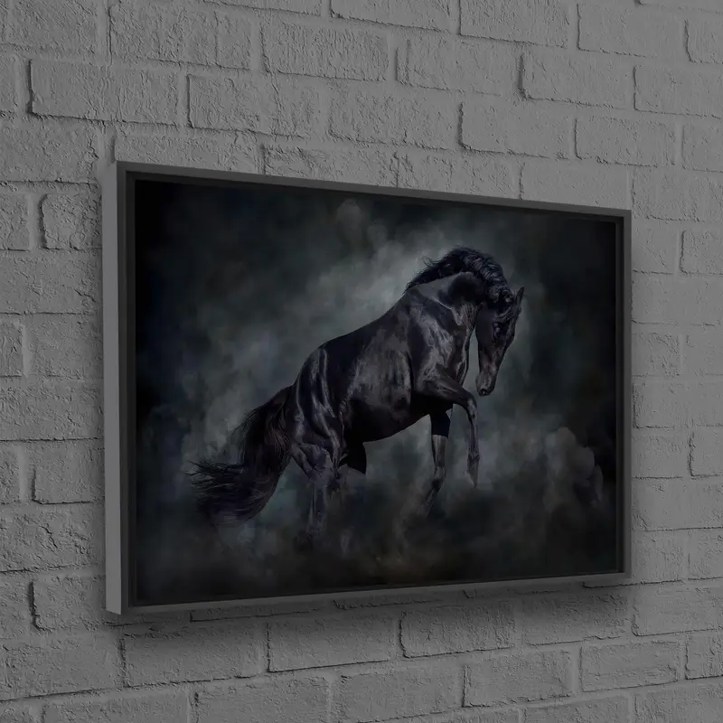 Elegant Black Horse Canvas: Farmhouse Decor & Man Cave Art