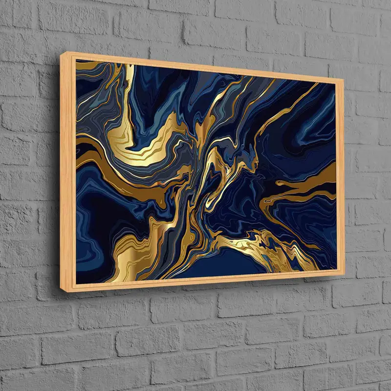 Modern Marble Navy Blue Shimmery Gold Printed Canvas
