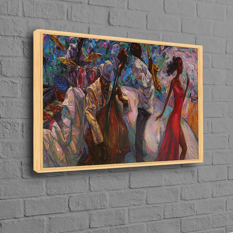 Vibrant African Jazz Canvas: Abstract Singer & Musicians