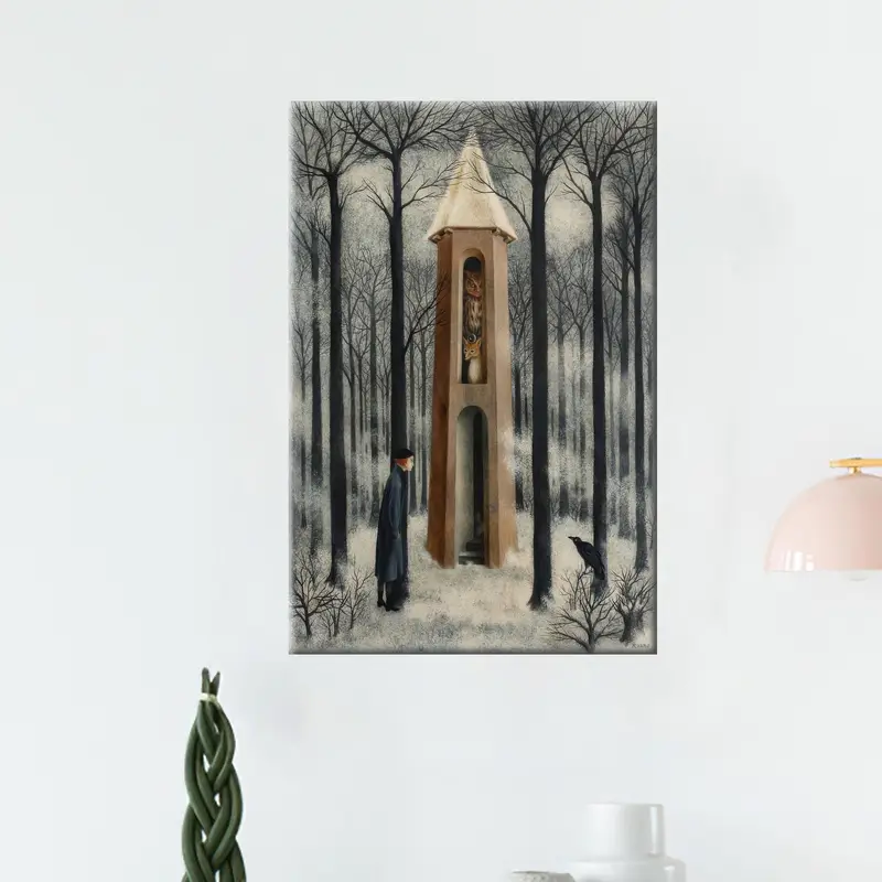 Enchanted Forest Canvas: Fox, Owl, and Human in Harmony