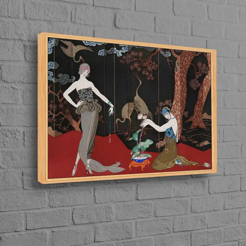 Elegant Canvas Print: George Barbier's Woman Painting, Asian Theme