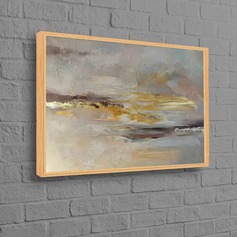 Contemporary Shimmery Gray and Gold Printed Canvas Art