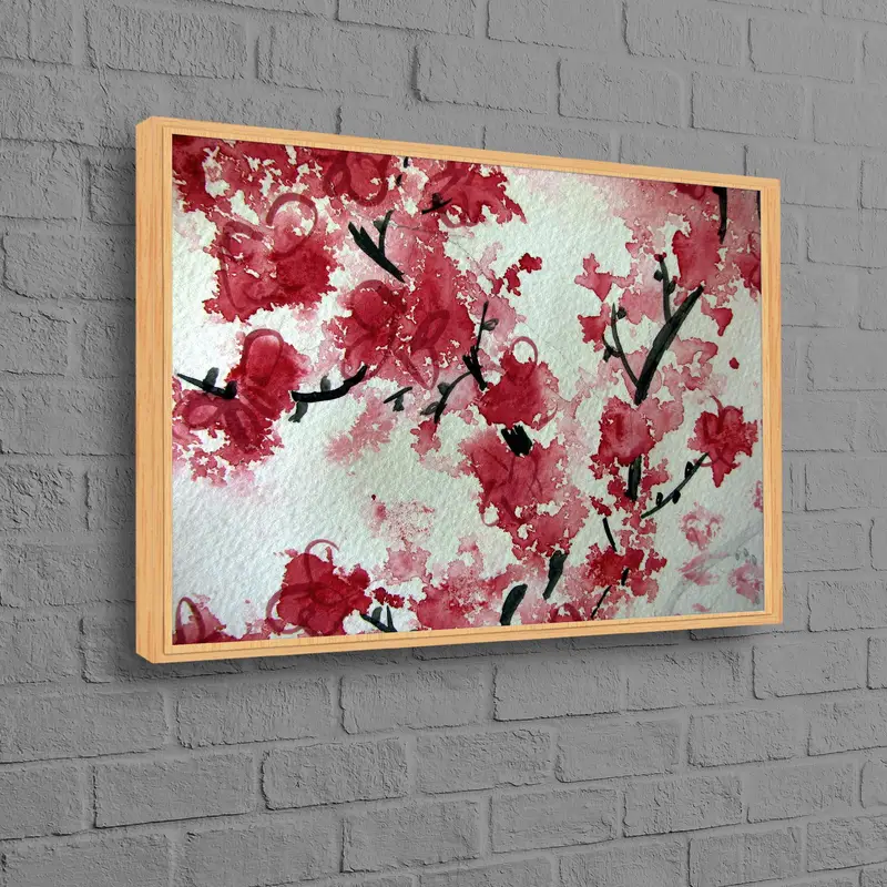 Elegant Red Blossom Japanese Floral Printed Canvas Art