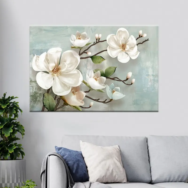 Elegant Magnolia Flower Canvas: Modern Luxury Wall Art
