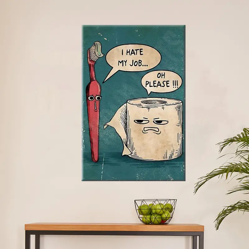 Artistic Bathroom Canvas: Funny Toothbrush & Toilet Paper Print