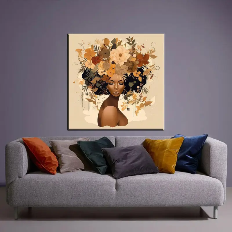 Elegant African Woman with Flower - Soft Tones Printed Canvas