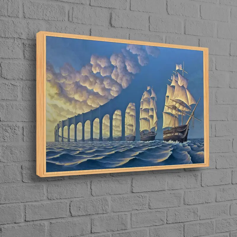 Surreal Sea Abstract Blue Canvas: Ship Voyage Art Print