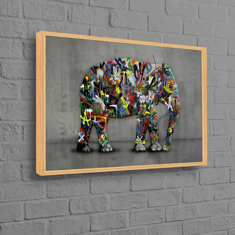 Vibrant Elephant Graffiti Canvas: Abstract, Colorful, Banksy-Inspired
