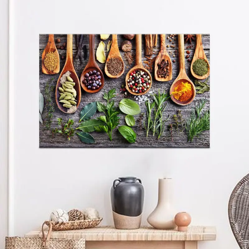 Elegant Farmhouse Herbs Canvas: Vibrant Kitchen Art Print