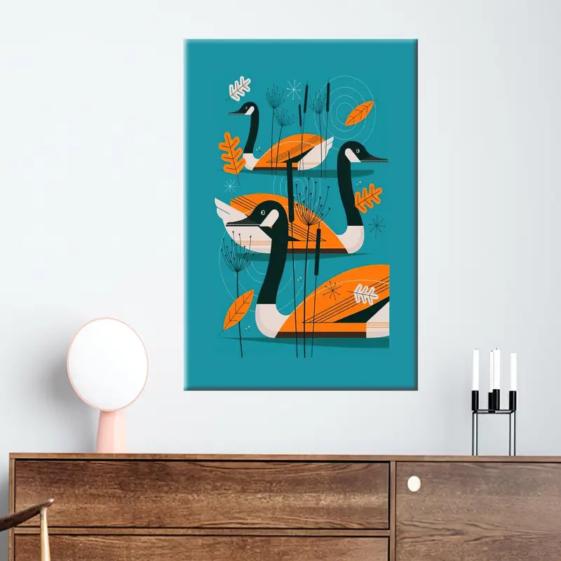 Elegant Duck Design Printed Canvas: Swimming Ducks Art