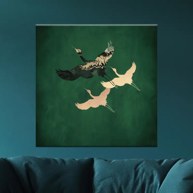 Modern Japanese Crane Abstract Canvas Print - Elegant Wall Art