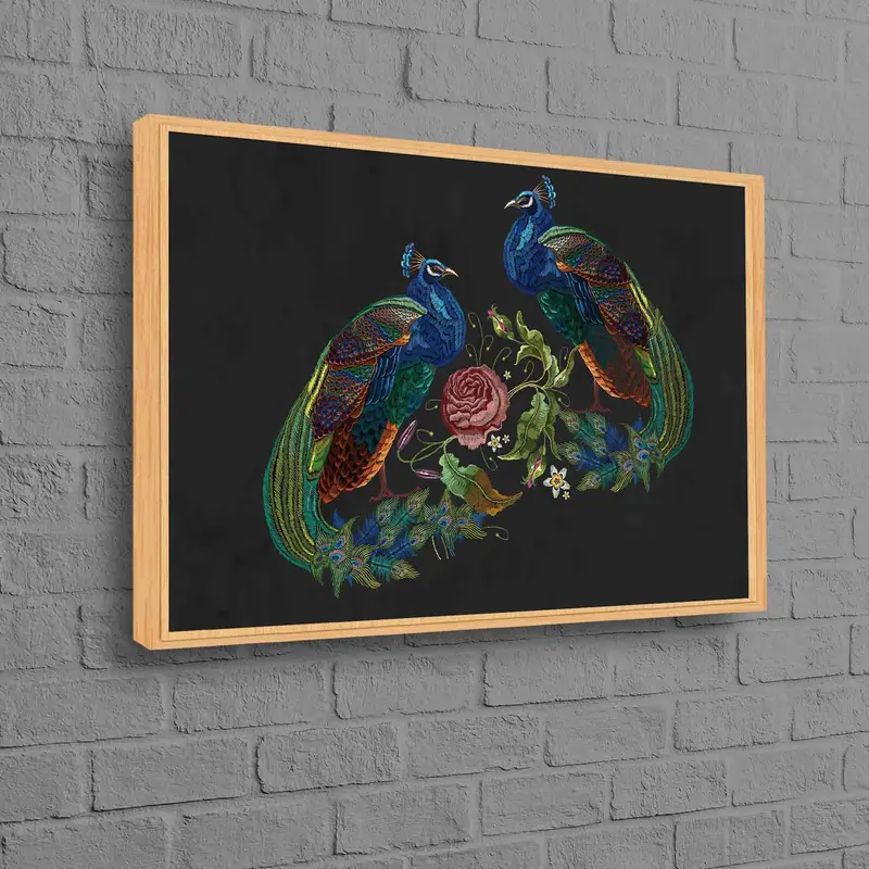Vintage Peacock Embroidery: Printed Canvas Art for Elegant Decor