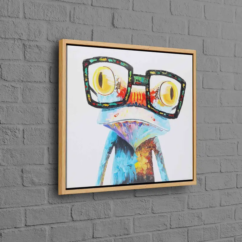 Modern Colorful Frog With Glasses Fun Animals Printed Canvas