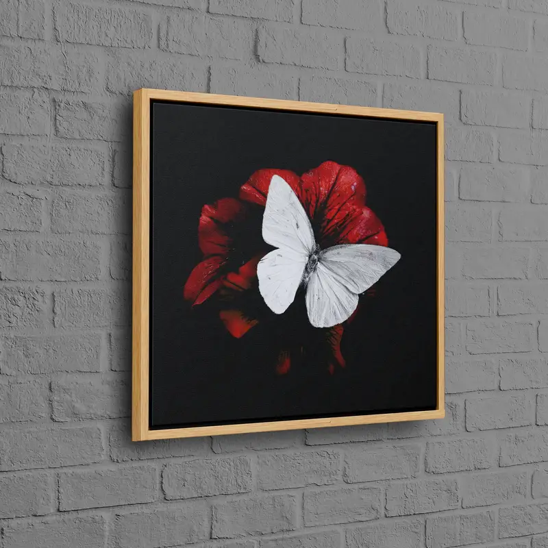 Modern Luxury: White Butterfly, Red Flower Printed Canvas Art
