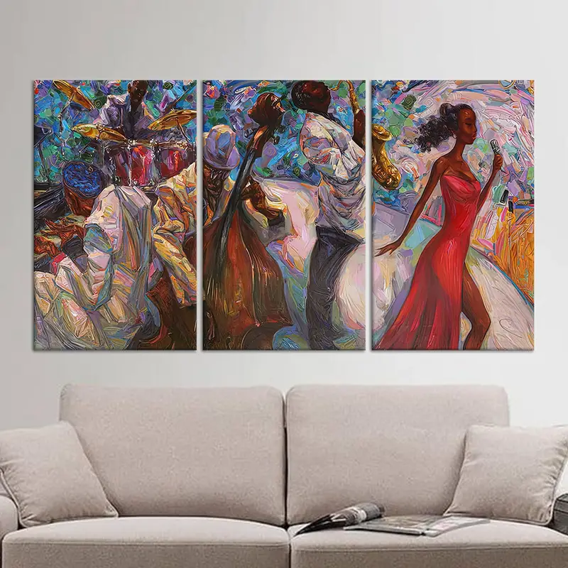 Vibrant African Jazz Canvas: Abstract Singer & Musicians