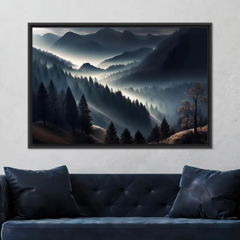 Elegant Mountain Landscape Canvas: Modern Farmhouse Decor