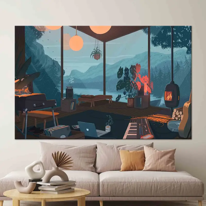 Lo-fi Anime City Canvas: Serene Japanese Art Print