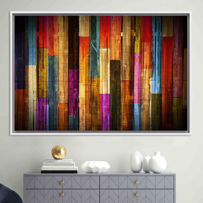 Vibrant Colorful Wood Effect Printed Canvas - Artistic Elegance
