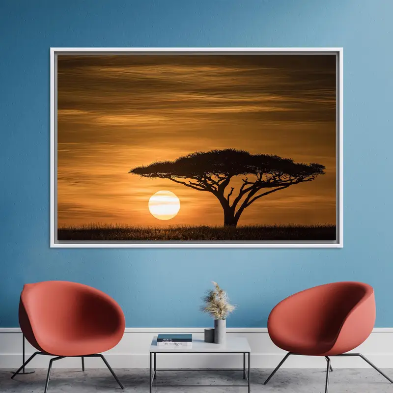 Serengeti Sunrise Canvas: Acacia Tree & Tanzania Landscape