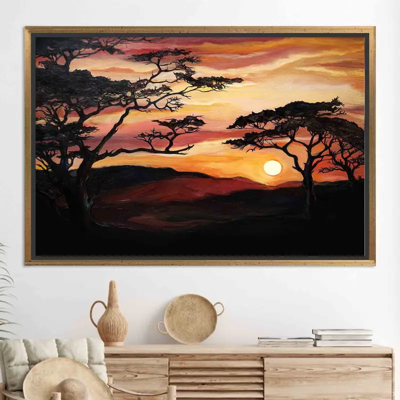Elegant African Sunset Canvas: Vibrant Nature Landscape Art