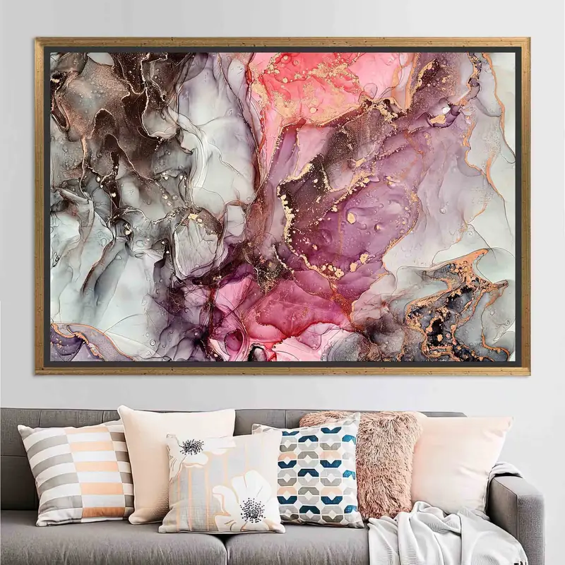 Elegant Gold Shimmery Marble Printed Canvas - Luxury Decor